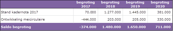 Na het uitbrengen van de Kadernota is een aantal ontwikkelingen naar voren gekomen met financiële consequenties. De consequentie van de meicirculaire heeft voor 2017 een incidenteel nadeel tot gevolg van € 444.000. De jaren na 2017 heeft deze circulaire een positief effect.