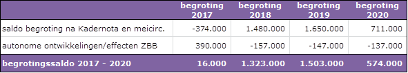 Op basis van het voorgaande is het saldo van de begroting als volgt.